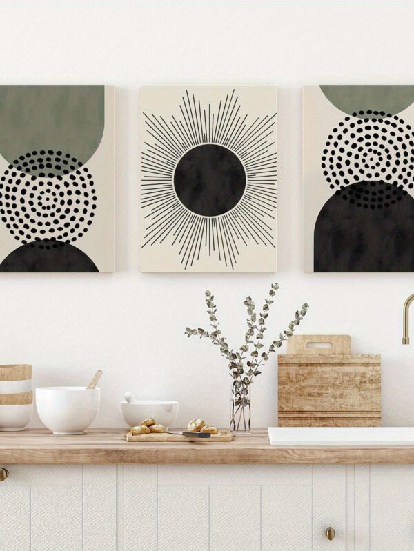 3-Piece Boho Sun & Line Canvas Set – Mid-Century Modern Geometric Wall Art