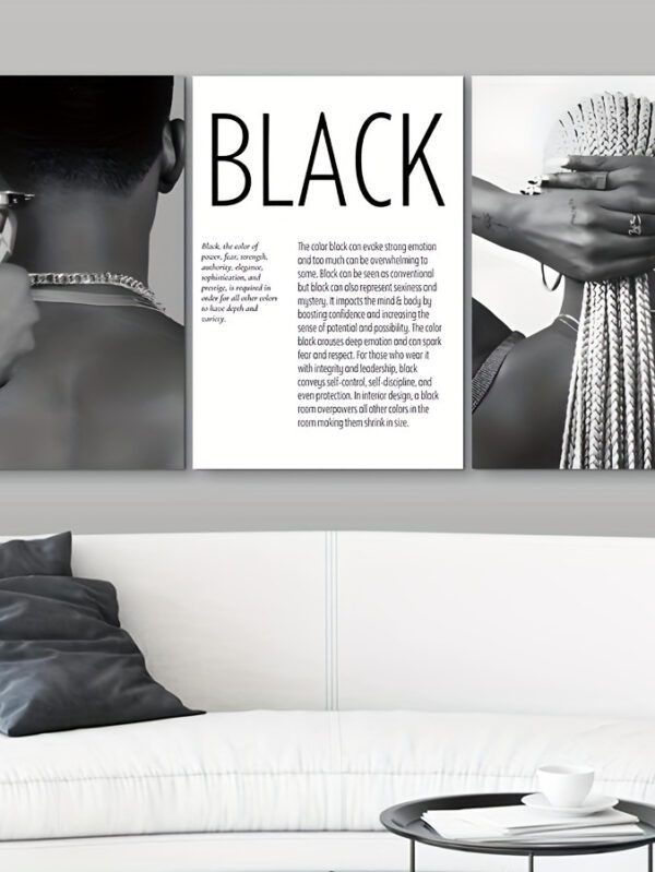 3-Piece Wrapped Canvas Set – Black Feminine Luxury Fashion Wall Art