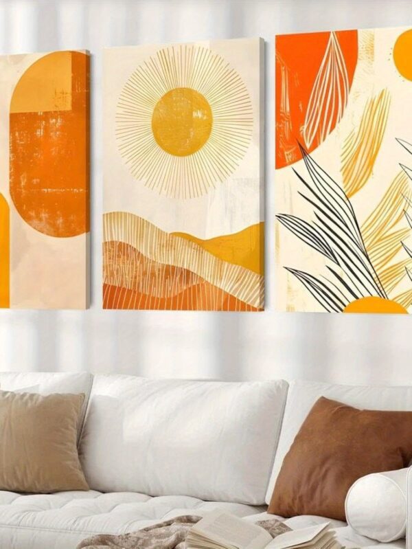 3-Piece Bohemian Desert Sun Canvas – Orange Landscape Wall Art with Wooden Frame